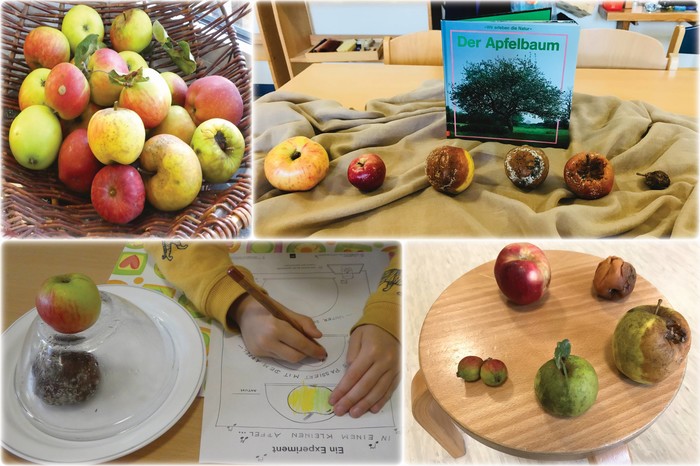 Die Kinder haben aus ihren Gärten unterschiedliche Äpfel für die Gruppe mitgebracht.