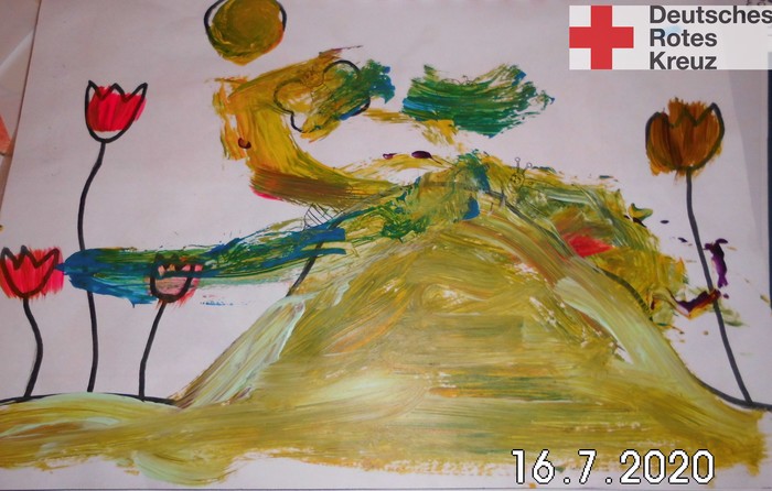 Bea Biene überlegte einen Moment. Dann sagte sie: "Hier in diesen wunderschönen Blüten findest du bestimmt etwas Nektar. Der schmeckt hervorragend. Wir Bienen brauchen ihn, um Honig zu machen." Rita wurde neugierig. Sie kletterte auf eine Blume auf die sich auch Bea Biene gesetzt hatte und beobachtete sie. Dann steckte sie ihren Kopf in die Blüte. "HATSCHI" - Die kleine Raupe musste von den Blütenpollen so stark niesen, dass alle Blütenblätter davonflogen. "Ich glaube den Nektar lasse ich euch für den Honig. Tschüss, Bea, bis bald", sagte Rita und kroch den Blütenstängel wieder hinunter. Wo sollte sie als nachste nach etwas essbarem suchen?